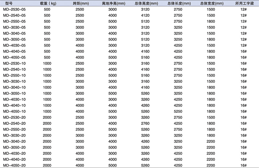 ● 橫梁為工字梁,可選配移動小車、手拉葫蘆、電動葫蘆等。