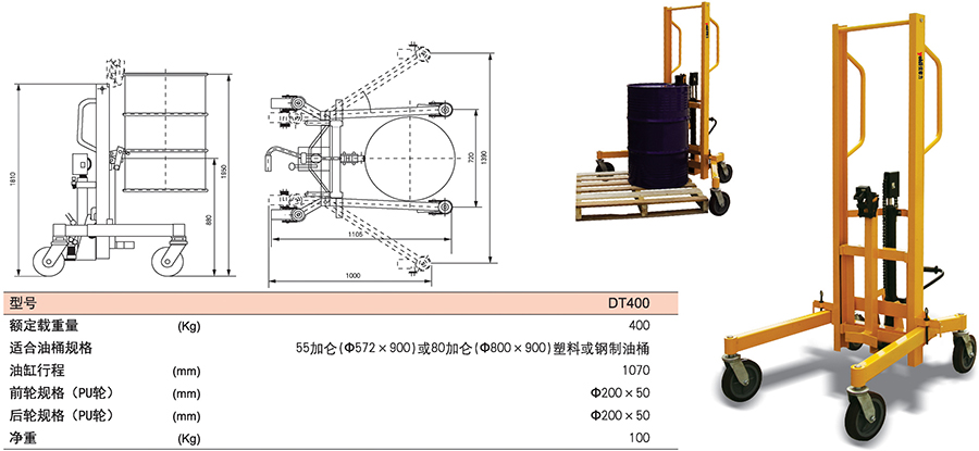 DT型高起升液壓油桶搬運車